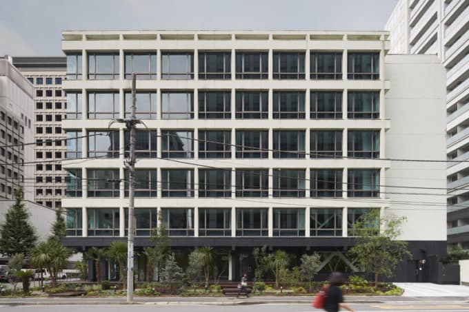 通りを歩いていると、聞き慣れない音や声が耳に飛び込んでくる。ビルの一角にある小さな公園のようなスペースは「永田町現代音」という音のミュージアム。グリーンの中にスピーカーが設置され、季節ごとにさまざまなアーティストが作品を発表する。また1階には、オーガニックカフェ、ドーナツ&コーヒーショップも併設し、オフィスビルながら街に開かれているのが特徴。2〜6階は、ソーシャルメディア事業などを手がける企業の本社として使われている。