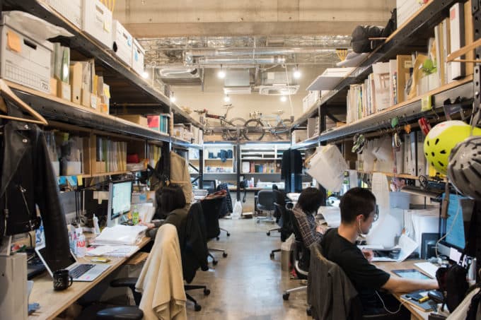 このパレットラック、使ってみると想像以上に使い勝手が良いことが分かった。フックでいろんなものを引っ掛けられるのでコートを掛けるハンガーとしても機能する。その他、それぞれが思い思いの使い方をしていてそれが風景として結構楽しいのだ。そして収納面でもとても優秀。ペーパーレス化が少しずつ進み、必要な書類などが減ってきてはいる世の中になってきてはいるものの、まだまだ仕事をする上で必要となるモノは多い。できるだけモノを少なくしたスッキリとしたオフィスもいいが、少し雑然することを許容し、それが個性として現れるようなこのような風景も有りなんじゃないかと思わされた。